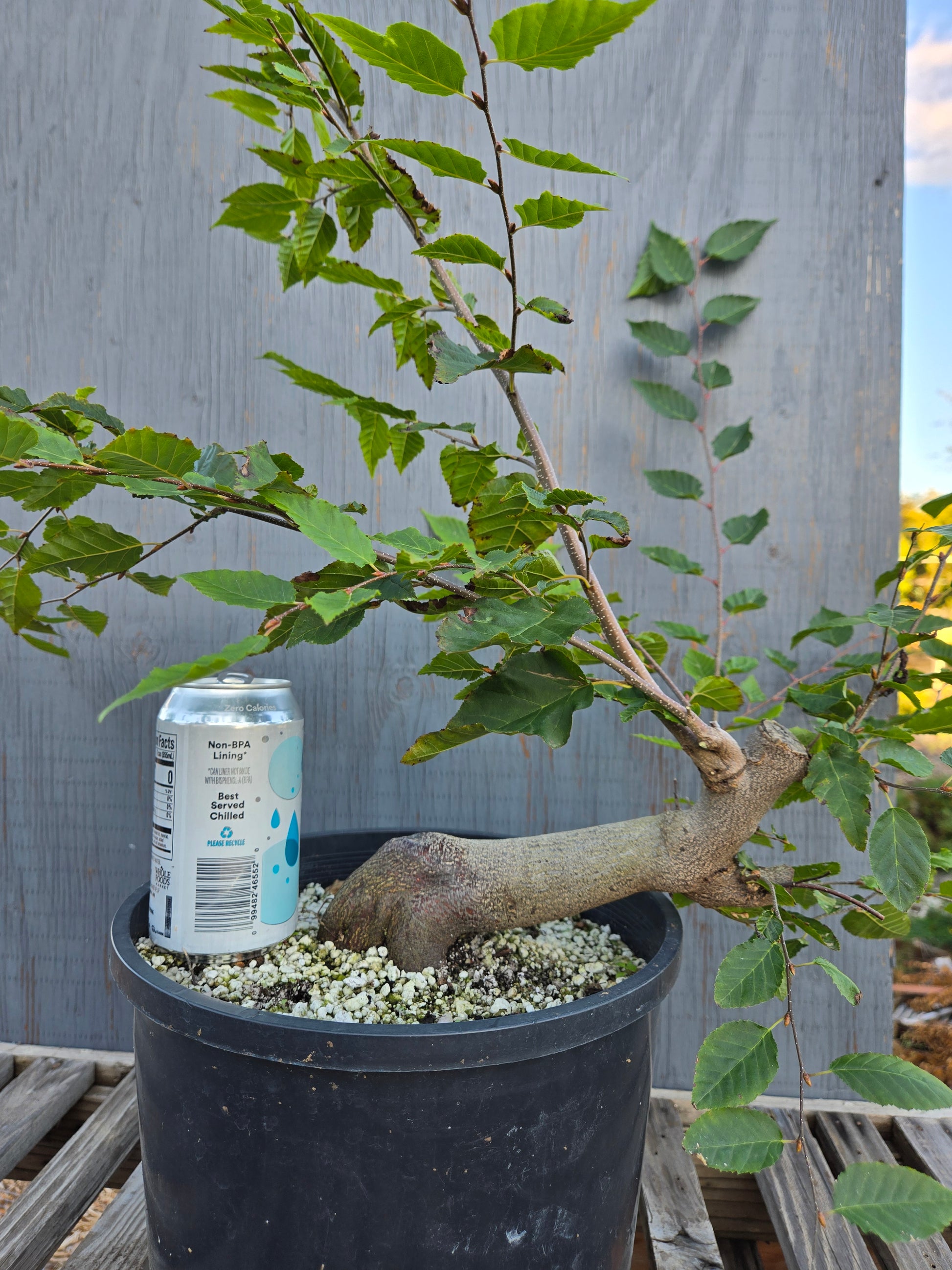- Notes: One of my favorite species for bonsai. This specimen has two excellent new leaders to choose from. The Plant should be stood up a bit more so that the main trunk is not so slanted.